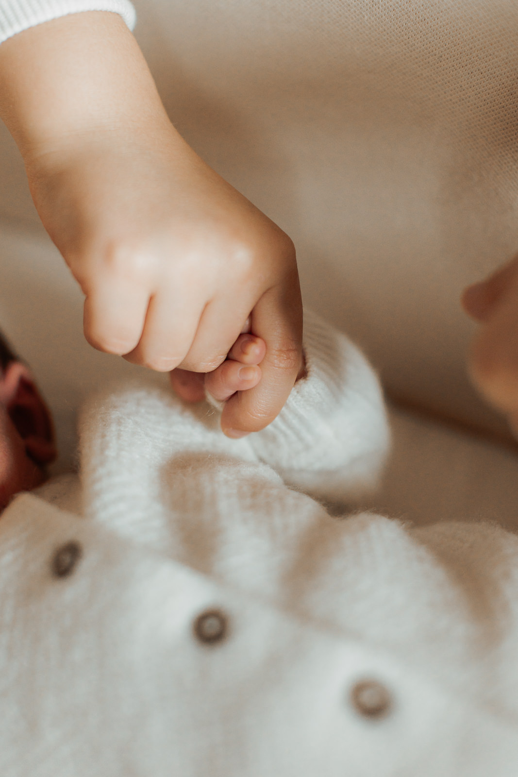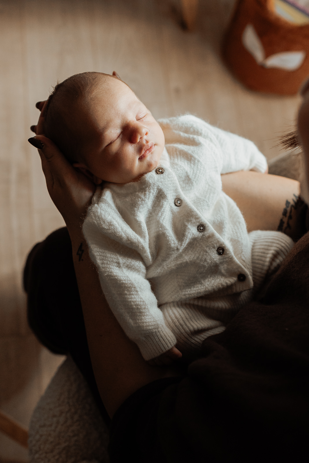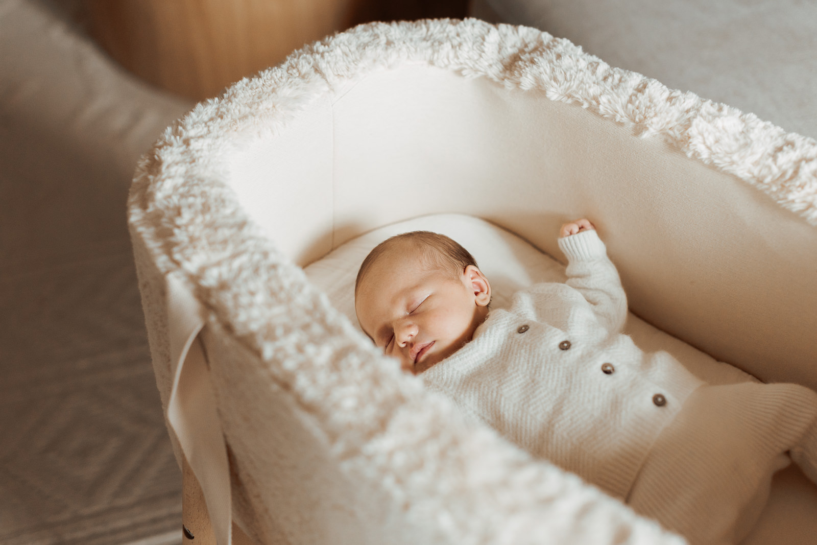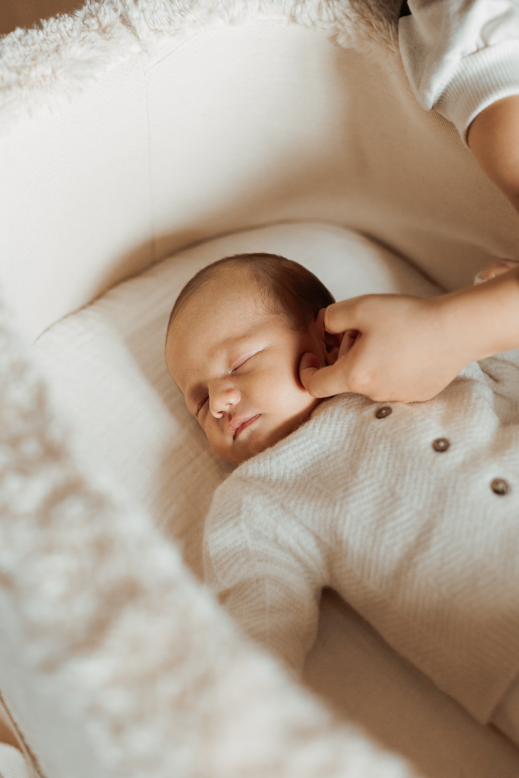 Les matières naturelles ( laine, coton, mailles…) ajoutaient une dimension encore plus cocooning aux photos. C’est un choix que je recommande souvent dans mes séances photo nouveau-né, car il s’accorde très bien avec les tons doux et naturels de mon style.