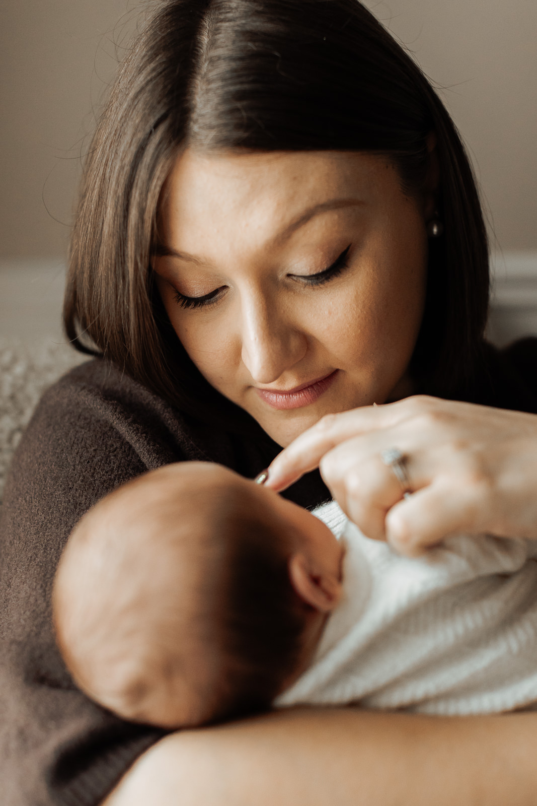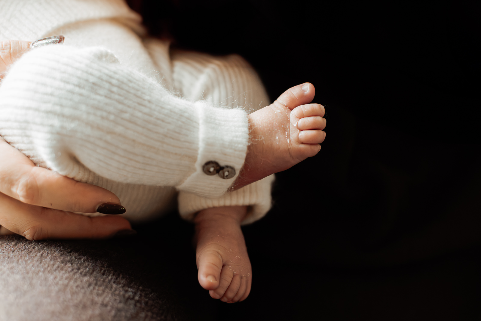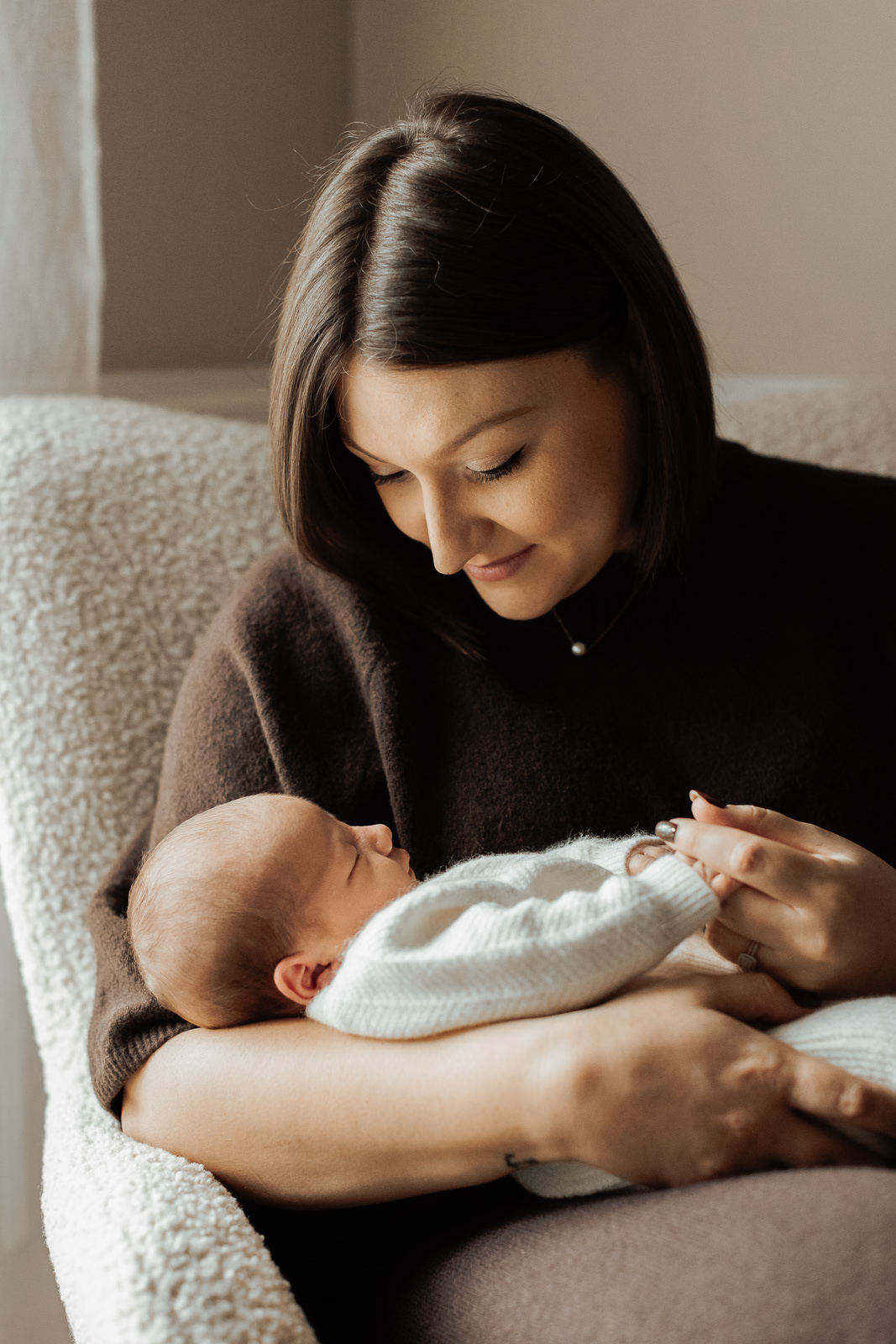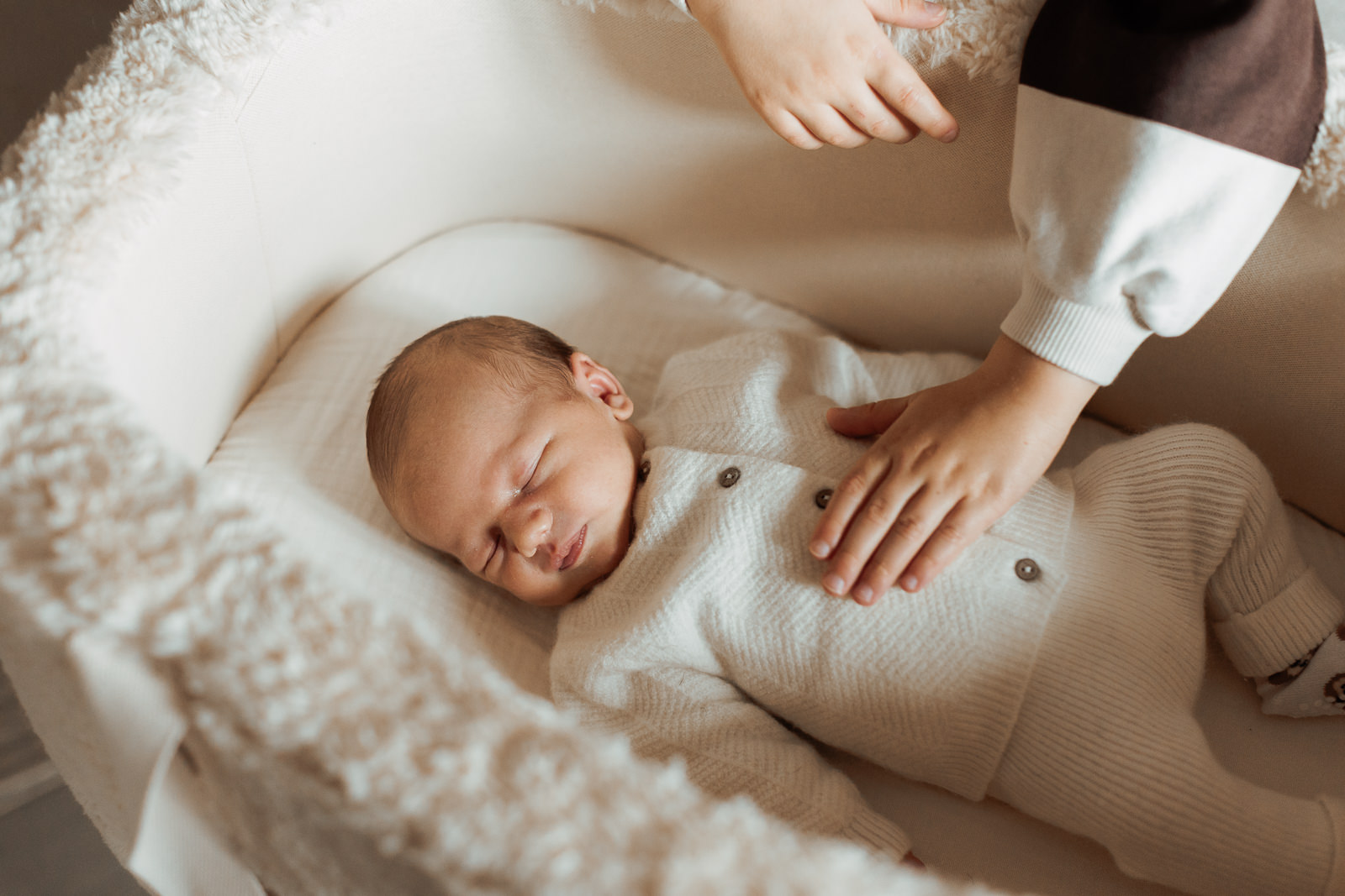 Les matières naturelles ( laine, coton, mailles…) ajoutaient une dimension encore plus cocooning aux photos. C’est un choix que je recommande souvent dans mes séances photo nouveau-né, car il s’accorde très bien avec les tons doux et naturels de mon style.