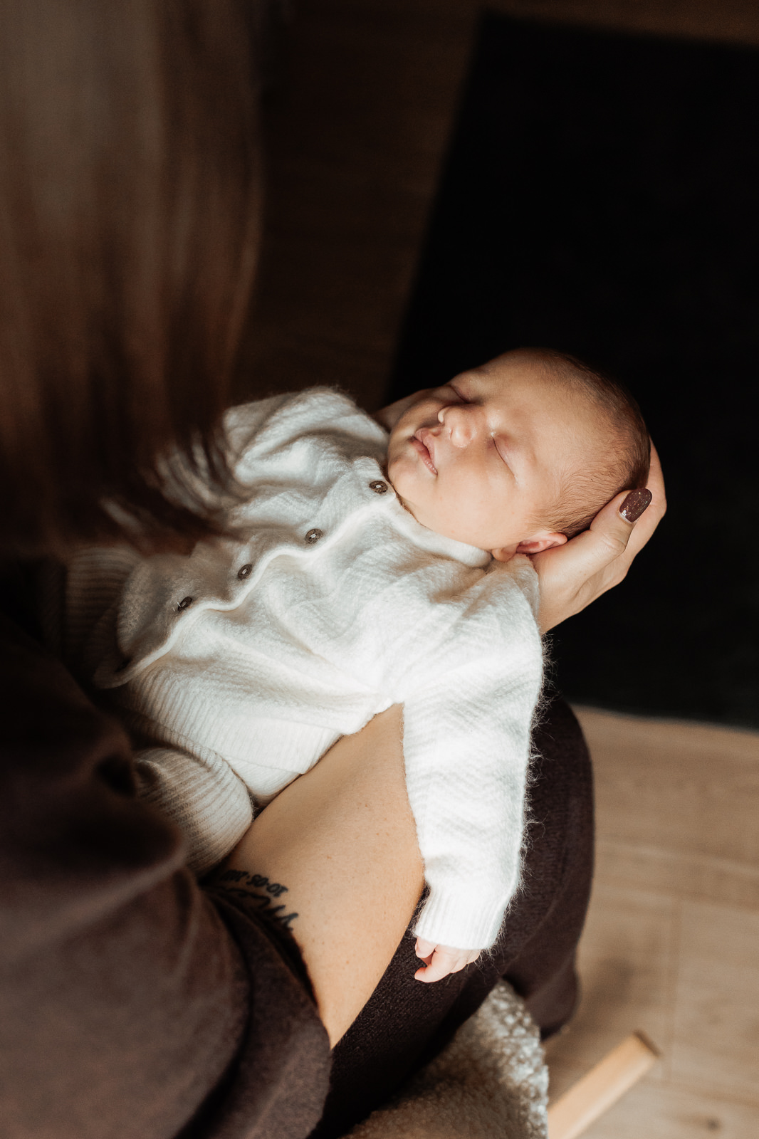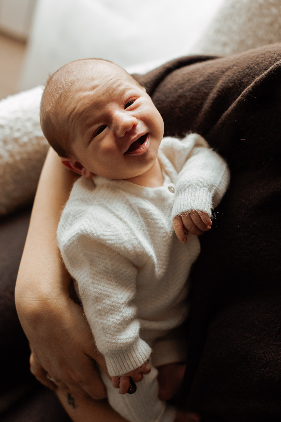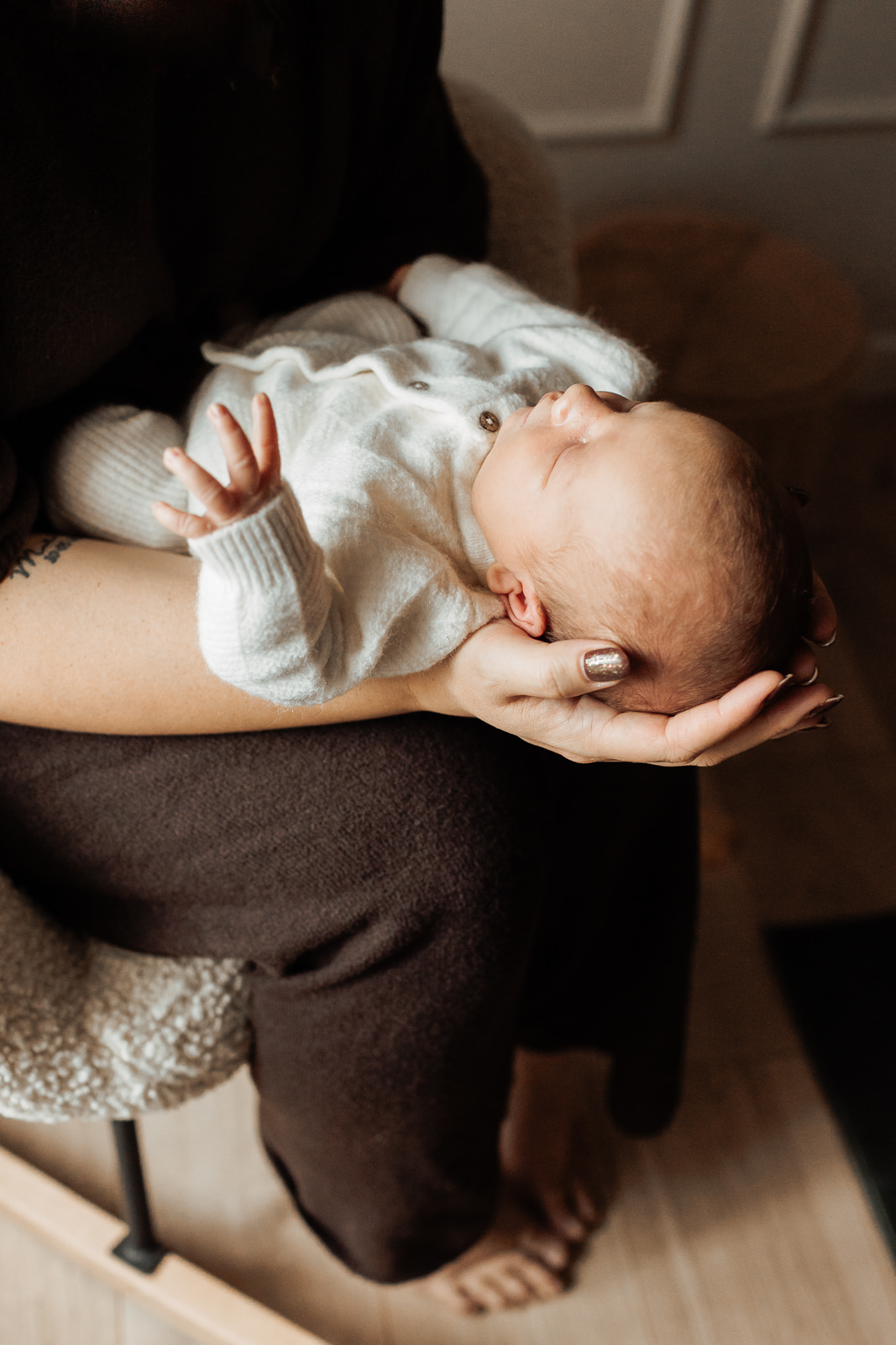 Dès mon arrivée, l’atmosphère était calme, enveloppée de douceur, j’ai adoré l’atmosphère. La maison formait un véritable cocon familial, simple et rassurant, idéal pour photographier les premiers jours de vie d’un bébé.