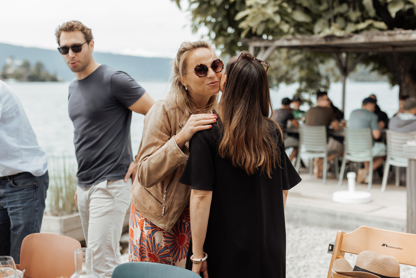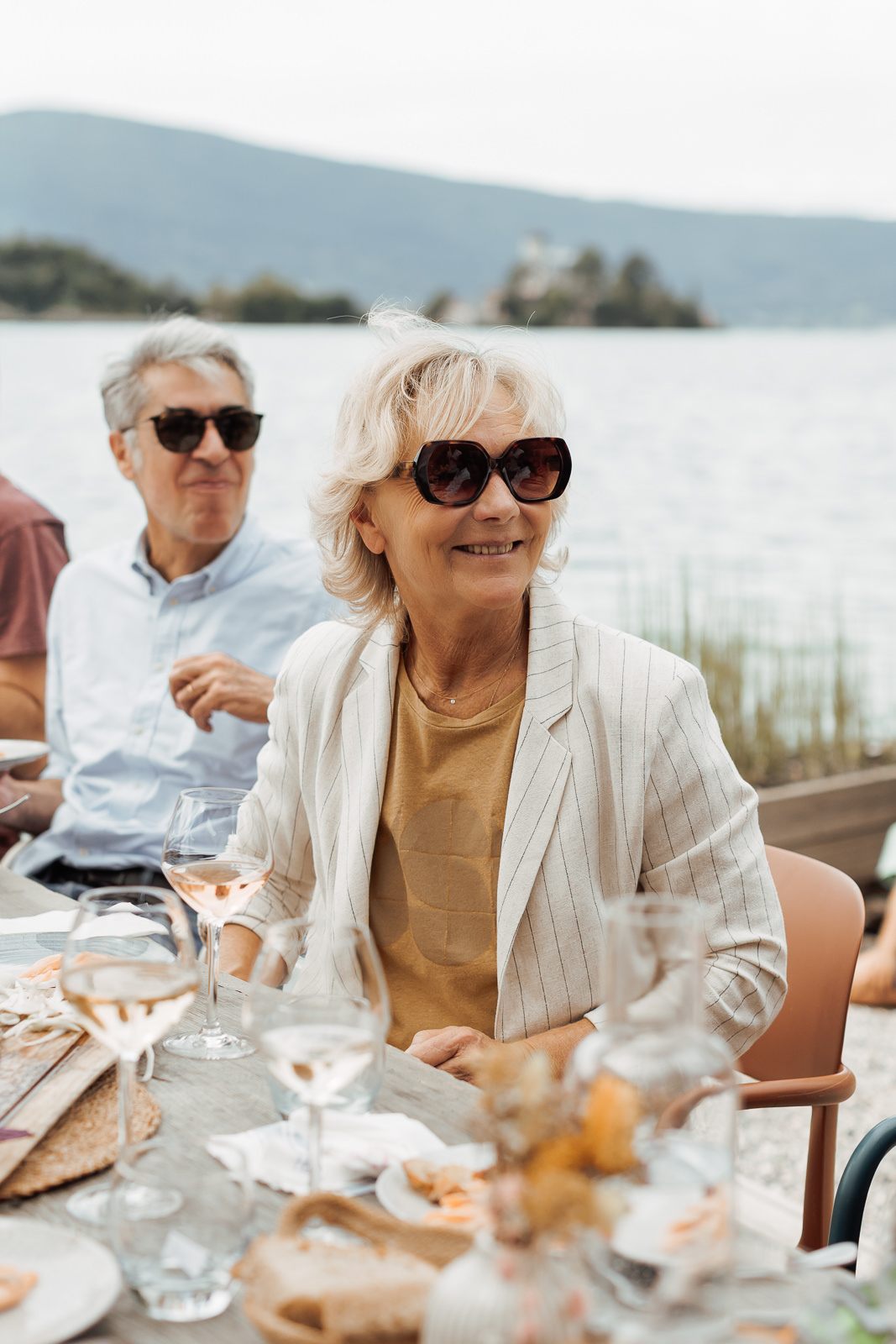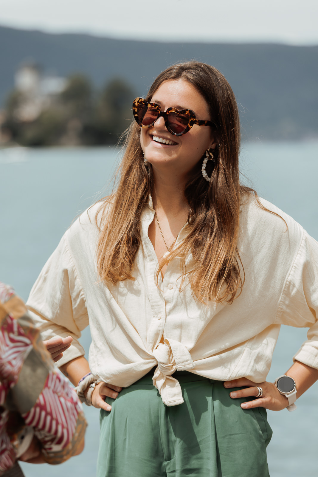 La lumière ce jour-là était intense et se reflétait sur le lac d’Annecy. Le restaurant Les Cassines permet d’avoir plusieurs points de vue différents : terrasse, bord de lac, montagnes en arrière-plan. Un terrain idéal pour un reportage naturel cohérent et lumineux.