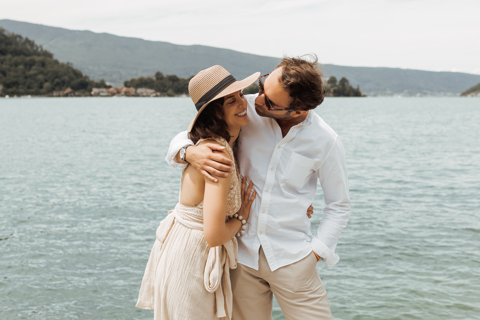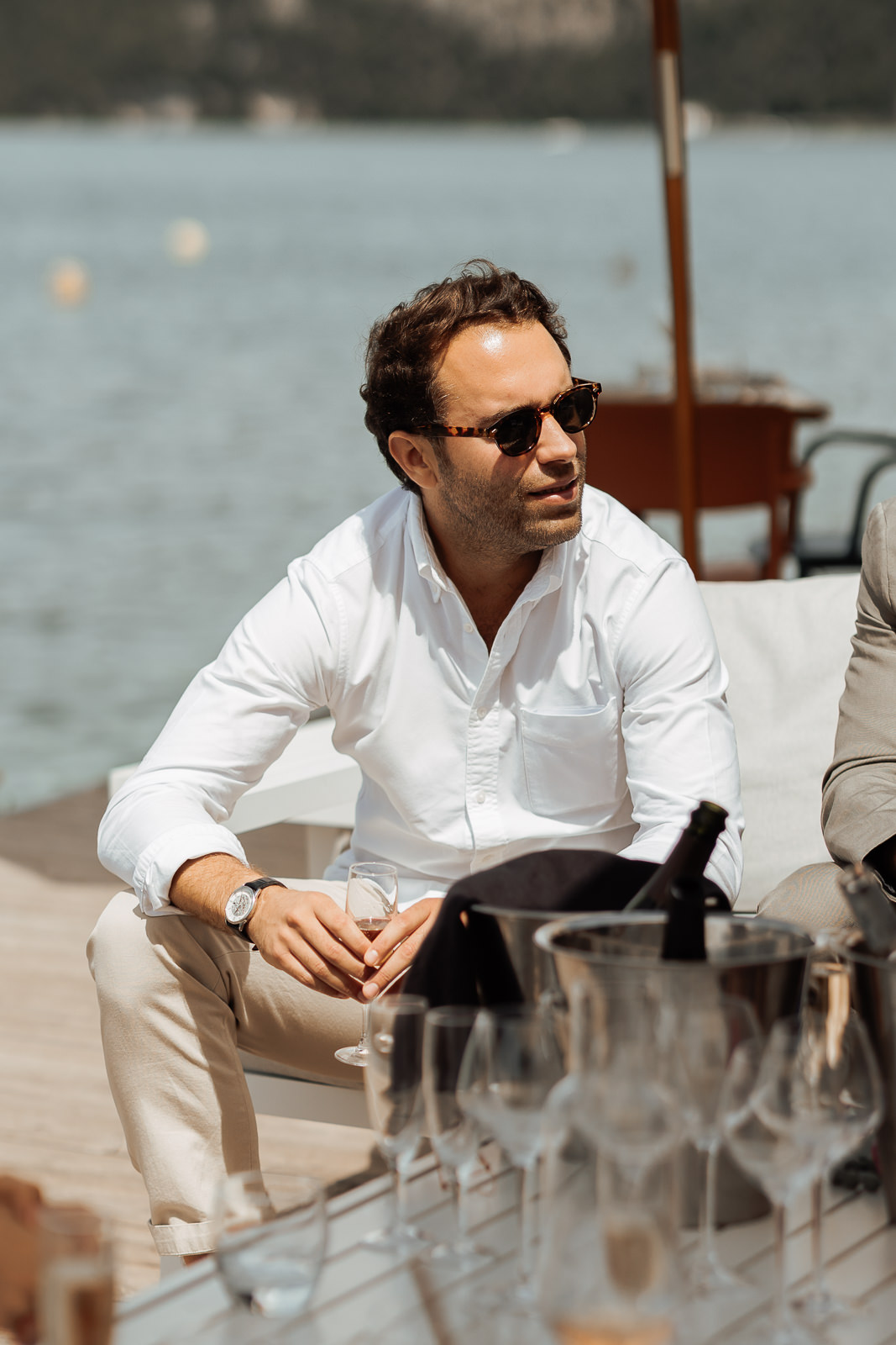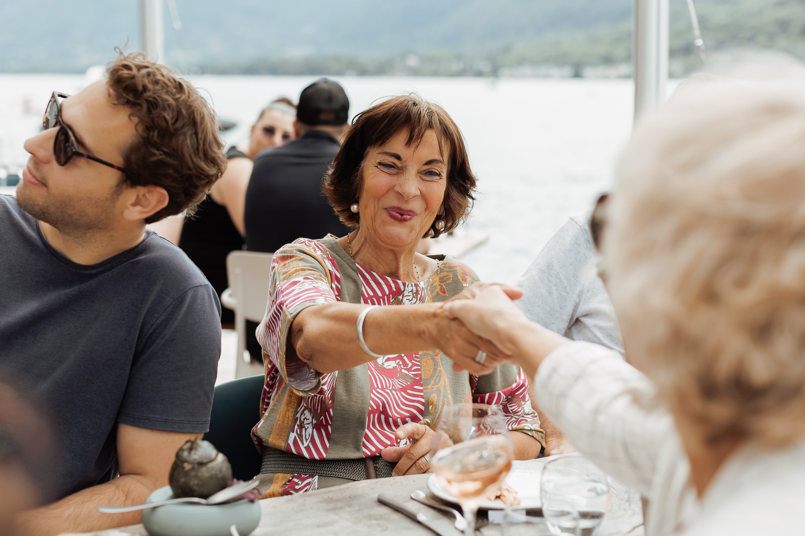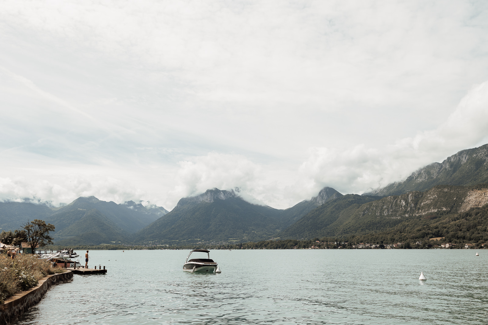 La lumière ce jour-là était intense et se reflétait sur le lac d’Annecy. Le restaurant Les Cassines permet d’avoir plusieurs points de vue différents : terrasse, bord de lac, montagnes en arrière-plan. Un terrain idéal pour un reportage naturel cohérent et lumineux.