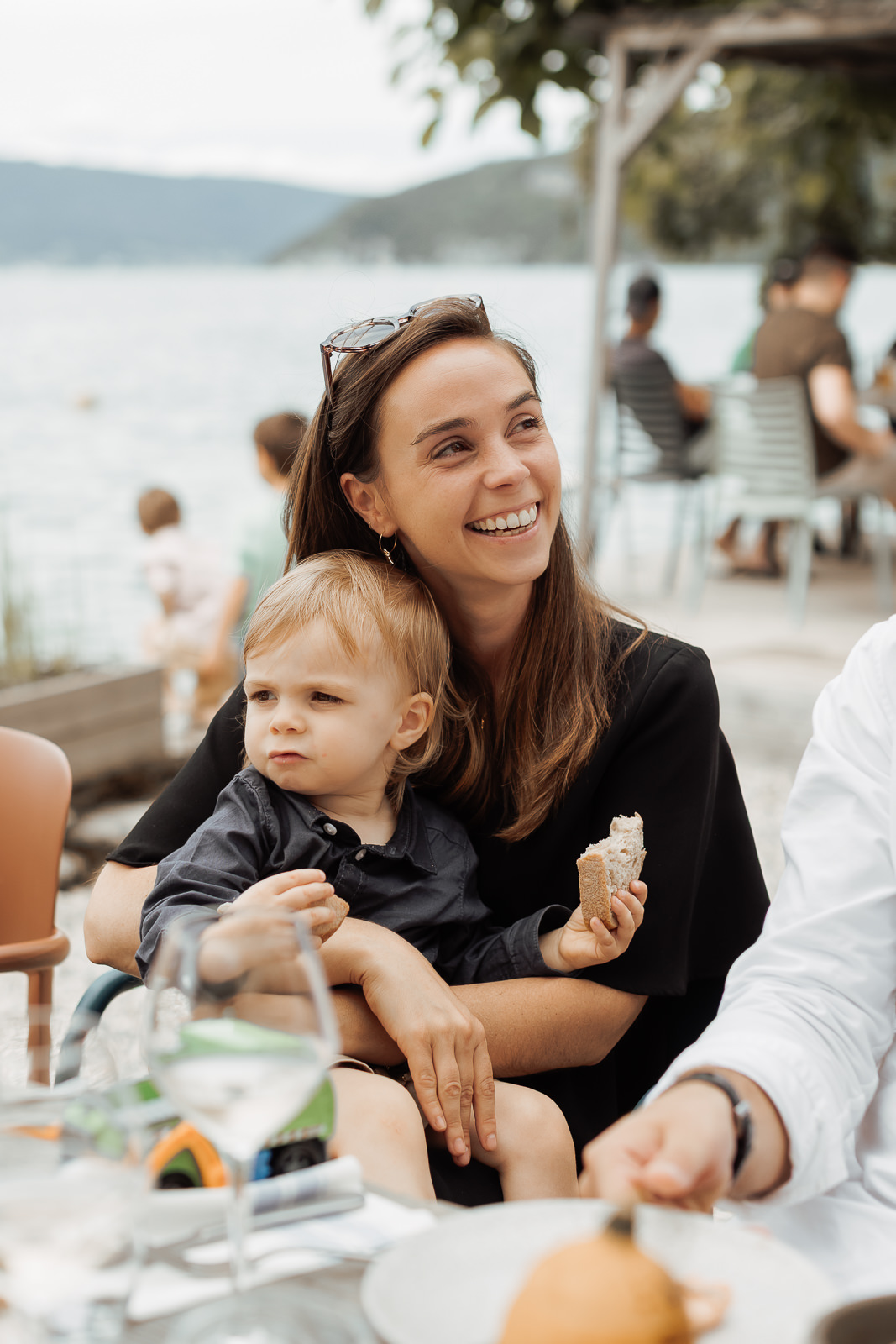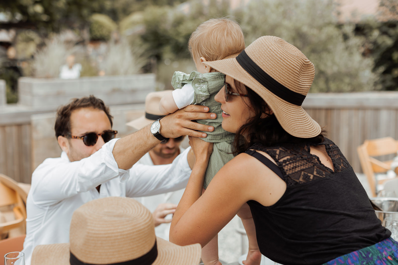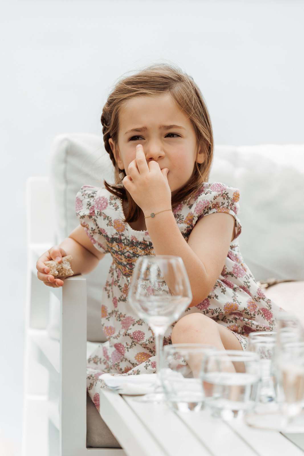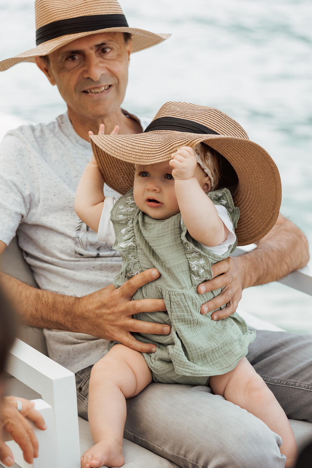 J’ai retrouvé la famille directement au restaurant pour commencer le reportage. Dès mon arrivée, l’ambiance était conviviale, douce et spontanée. Les enfants jouaient au bord de l’eau, les invités échangeaient autour des petits fauteuils, et chaque instant respirait la simplicité d’un rassemblement familial authentique.