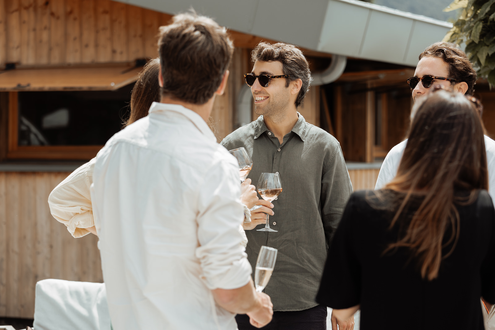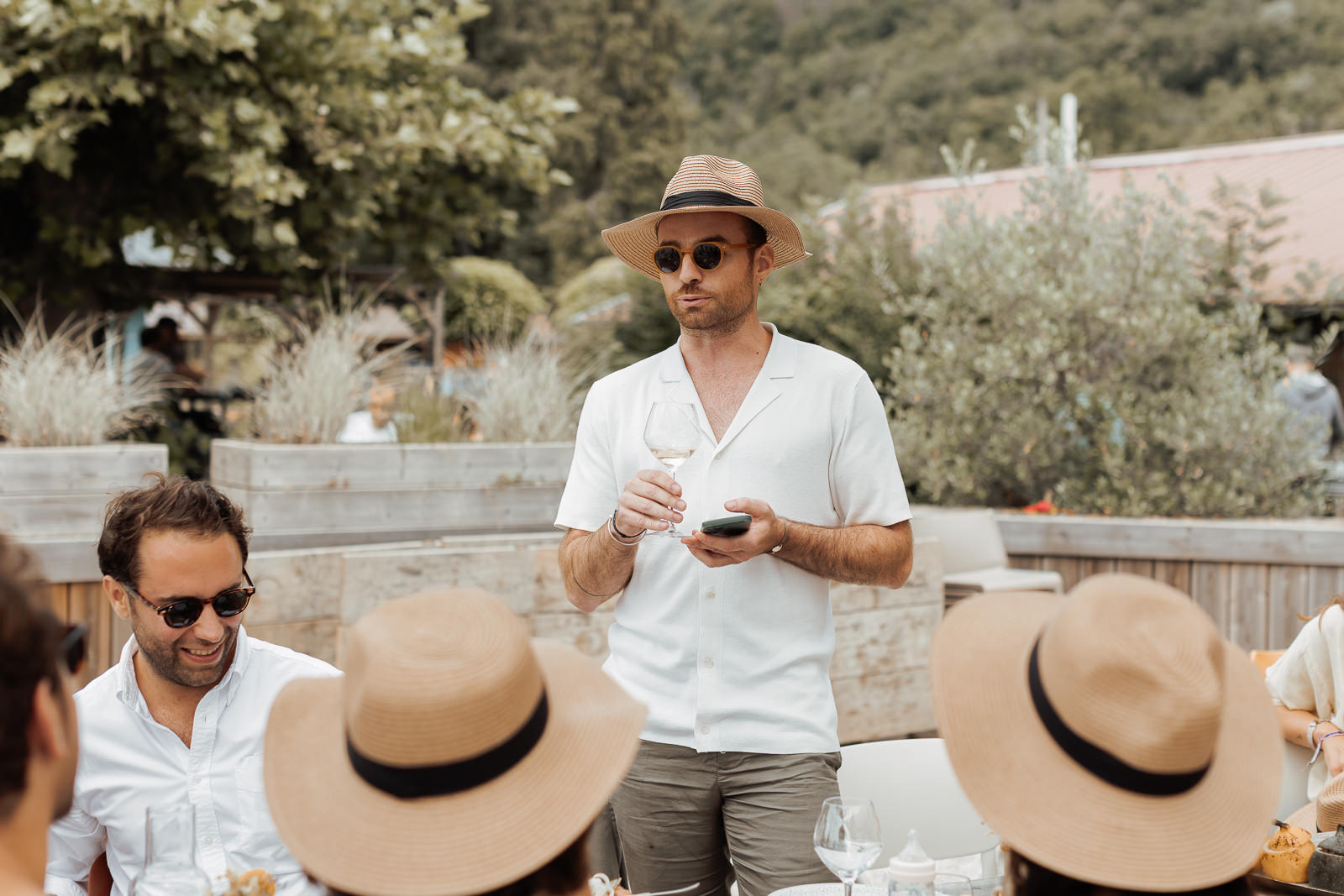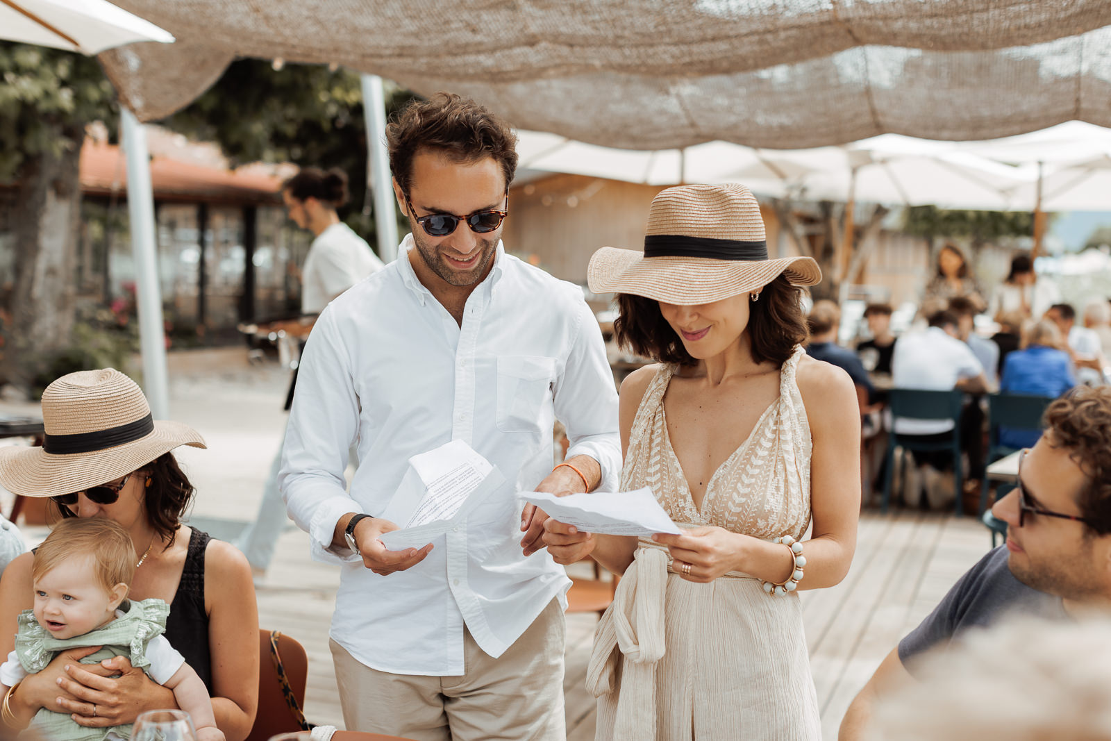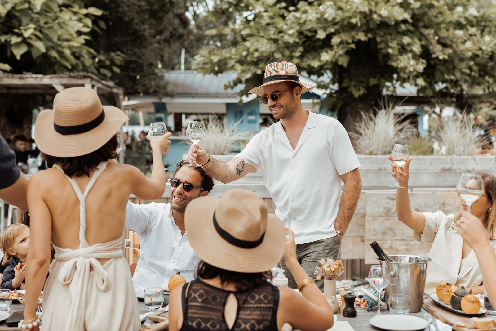 J’ai retrouvé la famille directement au restaurant pour commencer le reportage. Dès mon arrivée, l’ambiance était conviviale, douce et spontanée. Les enfants jouaient au bord de l’eau, les invités échangeaient autour des petits fauteuils, et chaque instant respirait la simplicité d’un rassemblement familial authentique.