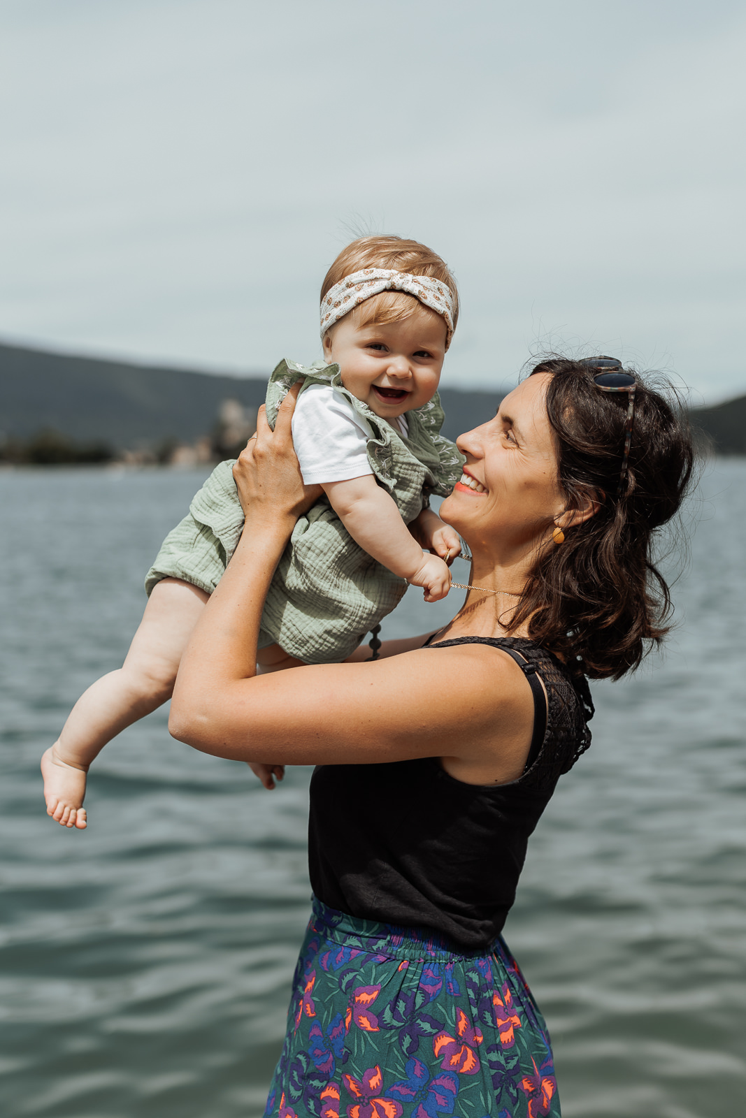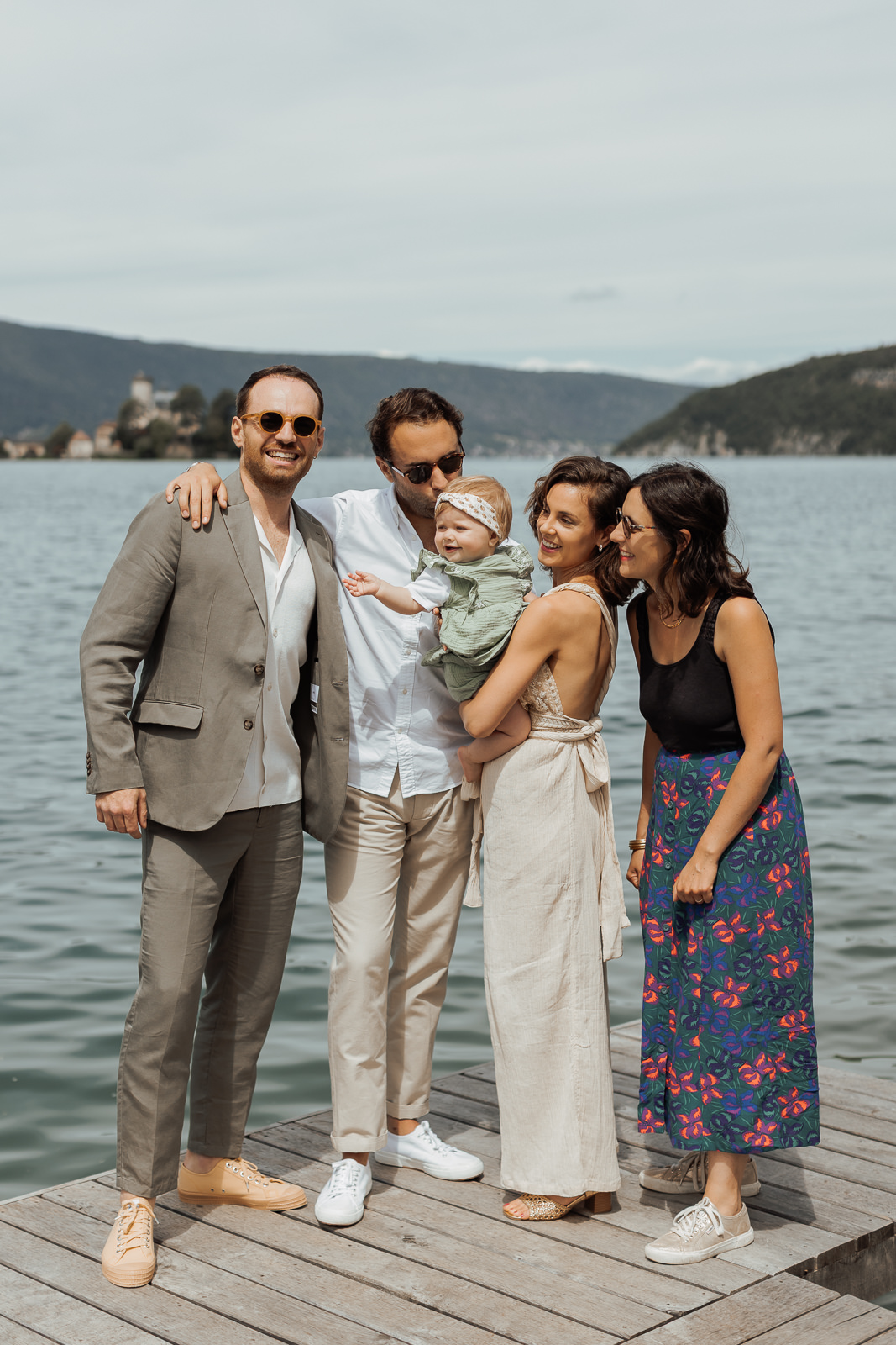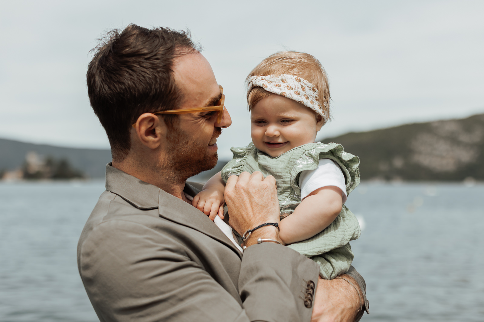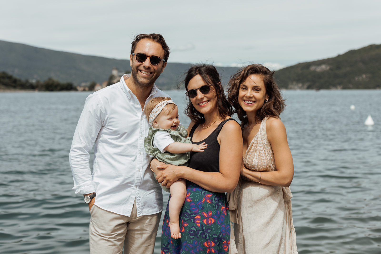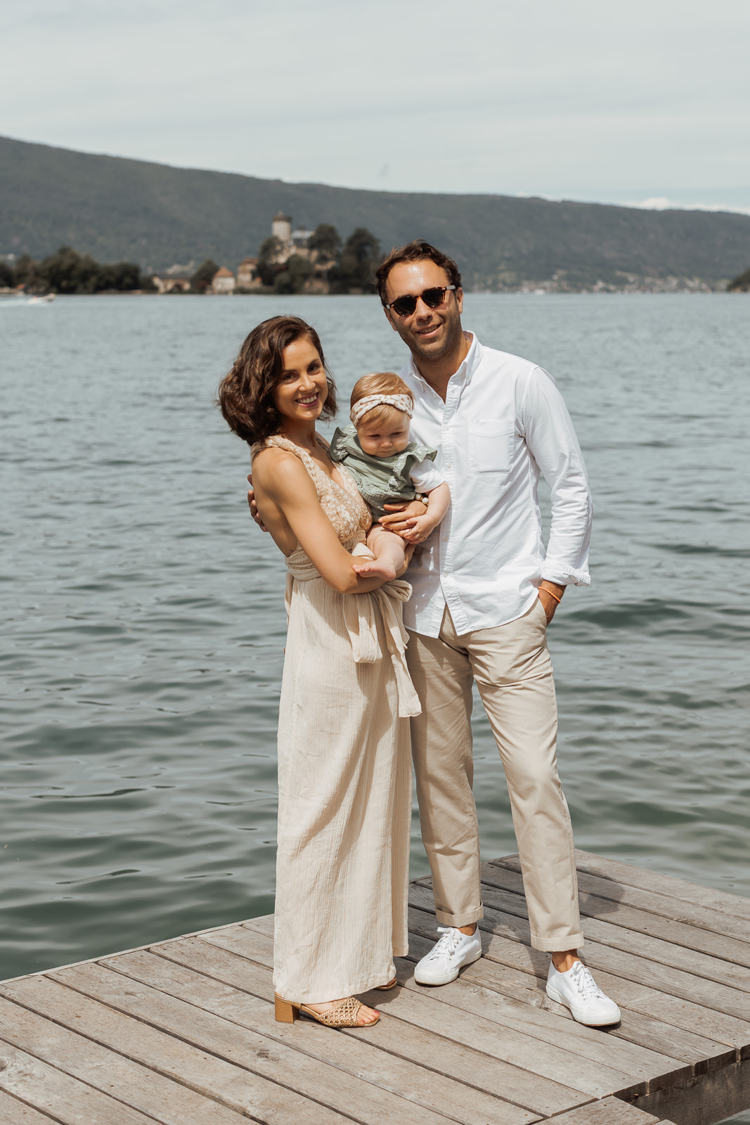 Photographe de baptême à Annecy, j’ai eu la chance d’accompagner cette famille dans un lieu emblématique, entouré de montagne et d’eau turquoise, pour une journée douce et lumineuse.